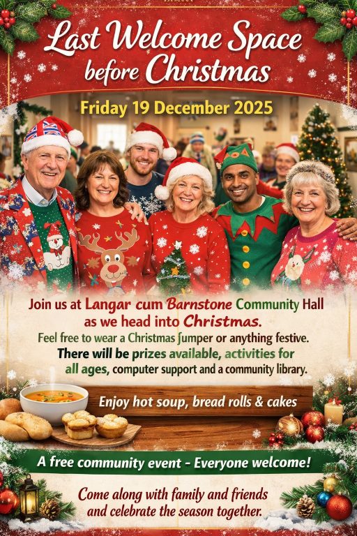 This is a free community space, open to everyone. Langar cum Barnstone Community Hall The Welcome Space team are really looking forward to seeing you all there! 🌟